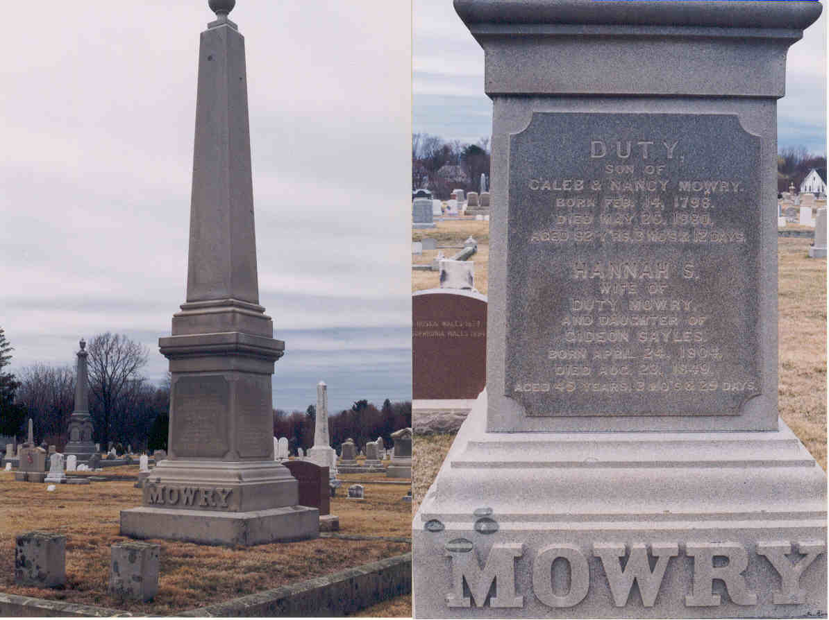 In addition to these genealogies, Mr. Arlon Mowry has, at his own expense, erected near the city of Woonsockett Rhode Island, a huge white bronze monument 51/2 feet square by 16 feet high on which are inscribed the first several generations of the descendants of Roger Mowry.
