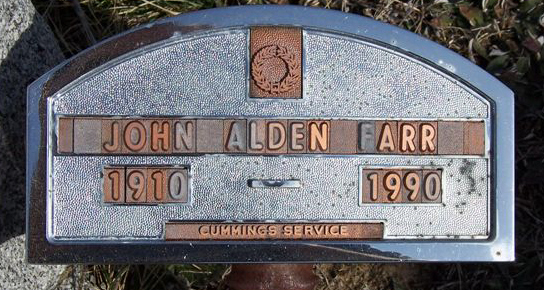 John Alden Nathaniel FARR [Parents] [scrapbook] was born 1 on 26 Mar 1910 in Cape Vincent, Jefferson, New York, United States. He died 2 in 1990 in Cape Vincent, Jefferson, New York, United States. John married Lorraine Rovers GILLESPIE.