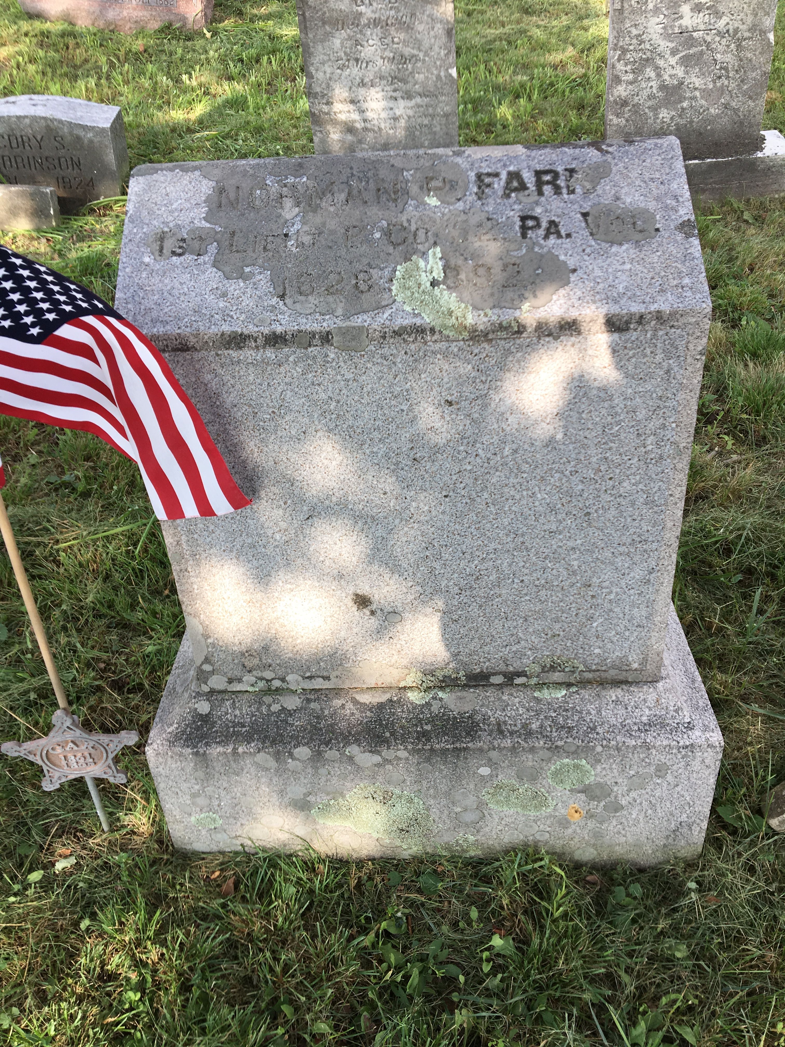 Norman P. FARR [Parents] [scrapbook] was born 1 in 1828 in Windham, Wyoming, Pennsylvania, United States. He died 2 in 1892. He was buried in Mehoopany, Wyoming, Pennsylvania, United States. Norman married Cynthia Ann ROBINSON on 31 Dec 1850 in of Forkston, Wyoming, Pennsylvania, United States.