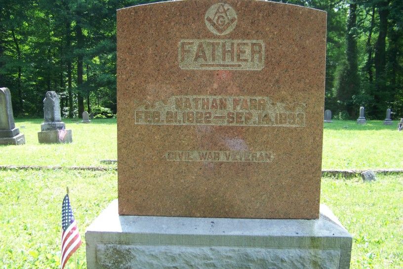 James and Catherine Farr saw ten of their young men march off to the great War to Save the Nation: son Nathan; grandsons Nathan L., Uriah H., James B., Thomas J., Jefferson C., William L., Benjamin F., and Harvey J. Laughlin; grand son-in-law, Absalom Ross. Of these: two became prisoners of war and were released in exchange; four were wounded in action. All survived the War. (Information provided by Joseph Burkhart, taken from a family history document that was compiled by Dr. James Farr, great great grandson of James and Catherine Farr.)