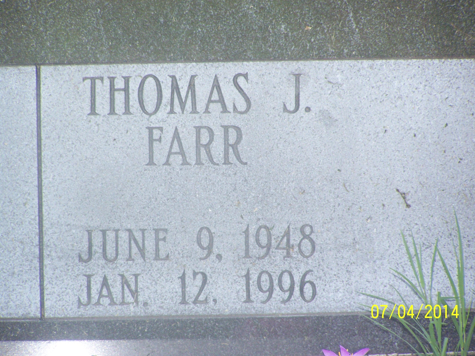 Thomas Jefferson FARR [scrapbook] was born 1 on 9 Jun 1947 in Martinsville, Morgan, Indiana, United States. He died 2, 3 on 12 Jan 1996 in Indianapolis, Marion, Indiana, United States. M iii Charles Michael FARR. F iv Nancy Ann FARR. M v Mark Eugene FARR. F vi