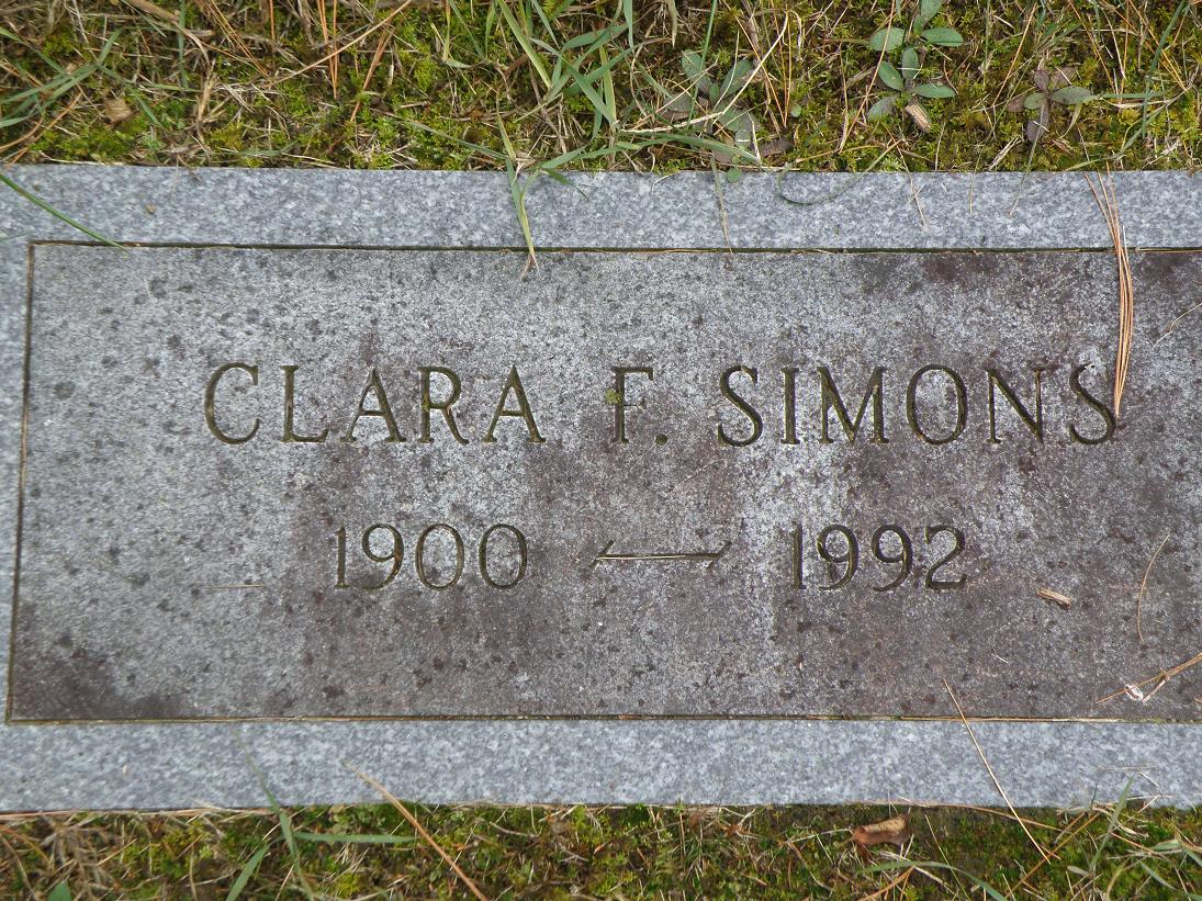Clara Philomay FARR [Parents] [scrapbook] 1 was born 2 on 8 Dec 1900 in Littleton, Grafton, New Hampshire, United States. She died 3 on 11 May 1992 in Littleton, Grafton, New Hampshire, United States. Clara married 4 Elmer David SIMONS on 27 May 1921 in Littleton, Grafton, New Hampshire, United States. |