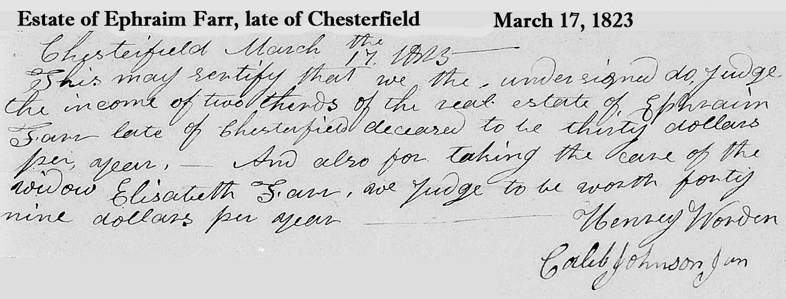 Rebecca FARR was born 1 on 15 Feb 1766 in Chesterfield, Cheshire, Colony of New Hampshire, British Colonial America. M iii Ephraim FARR Jr. was born on 20 Feb 1768. He died in Feb 1815. F iv