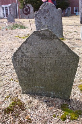 | Headstone In Memory of Mrs Kezia Freeman an Late Consort of Mr Edmond Freeman who Departed this life April 20th 1764 Age 77 years |