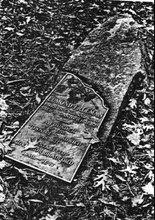 | Edmund Freeman's Grave EDMOND FREEMAN BORN IN ENGLAND 1590 DIED IN SANDWICH 1682 A FOUNDER OF THE TOWN OF SANDWICH IN 1637 ASSISTANT TO GOVERNOR BRADFORD 1640 - 1647 |