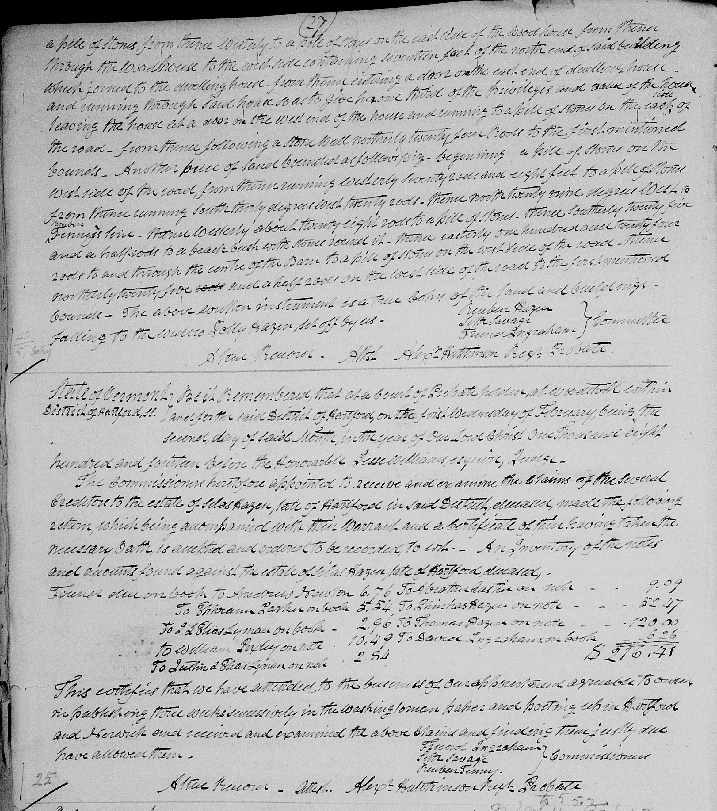 Silas Hazen Probate Vol. 4 Pg 615 Hartford District
