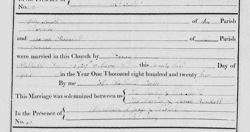 | John Smith & Sarah Randall's Marriage Record Keymer, Sussex, England FHL film #4428685, Item 1 |