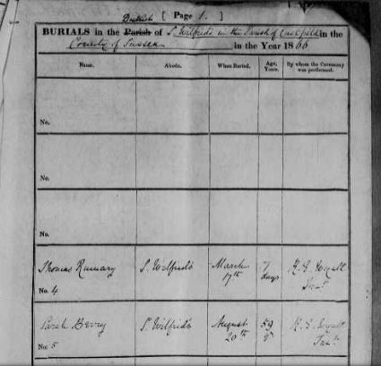 | Sarah Randall Smith Berry's Burial Record St. Wilfrid's, Cuckfield, Sussex, England |