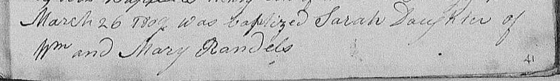 | Sarah Randall's Christening Record Twineham, Sussex England FHL British Film#1068524, Item 8 |