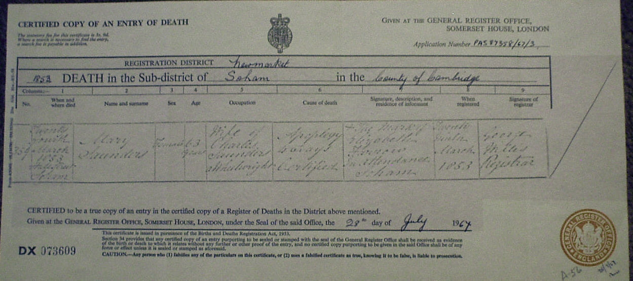 Mary's Death Certificate