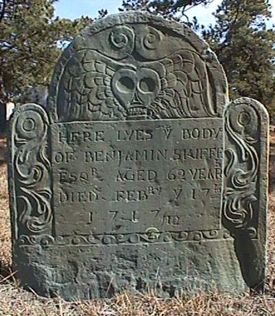 Benjamin SKIFF [Parents] [scrapbook] 1 was born 2, 3 on 15 Nov 1655 in Sandwich, Barnstable, Massachusetts Bay Colony. British Colonial America. He died 2 on 17 Feb 1717/1718 in Massachusetts Bay Colony, British Colonial America. He was buried 4 in Chilmark, Dukes, Massachusetts Bay Colony, British Colonial America. Benjamin married 2, 5 Hannah MERRY on 20 Feb 1679/1680 in Martha's Vineyard, Massachusetts, United States.