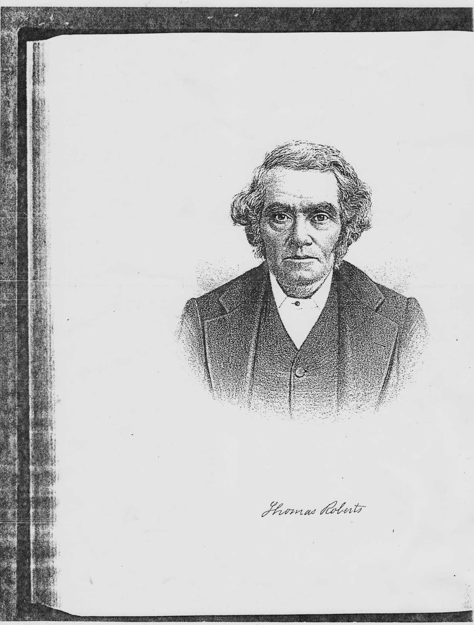 THOMAS ROBERTS was born in North Wales, March 23, 1816, butwas reared in Liverpool, England. His father was a farmer and his parents were in moderate circumstances. Left without resources, save his energy, judgment and fact, he has risen to positions of honor and respectability. At the age of eighteen, as an adventurer, he emigrated from England and settled in America,taking up his abode in New York City. At the expiration of nearly two years here moved to Geauga county, Ohio, and began operations as a tailor, in which he continued about five years. In the fall of 1841 he removed to Burlington,Racine count, Wisconsin, where he lived four years as a farmer. In 1845 he again changed his residence and located in Dodge county, and for ten years pursued the life of a farmer in that locality. In 1855 he removed to Kansas, settled near Osawatomie, took a claim, opened a farm,and in 1857 pre-empted the land. On this spot he has since resided to the present time, and has one of the most fertile and best appointed farms in Miami county. In 1859 he was elected the first probate judge of Miami county, under the state organization, entering upon the duties of his office in April, 1861,on the admission of the State into the Union. This office he held until 1863. In 1862 he was elected a state senator from Miami county, and served during his term. He was elected clerk of the district court in 1864. Having been admitted to the bar in 1861, and practiced his profession, he was elected county attorney in 1866. He continued in the practice of law until 1877, when he retired from the profession. For the last eight or nine years he has been interested in a saw and grist mill near Osawatomie, and has from his first settlement in Kansas, conducted extensive farming operations.