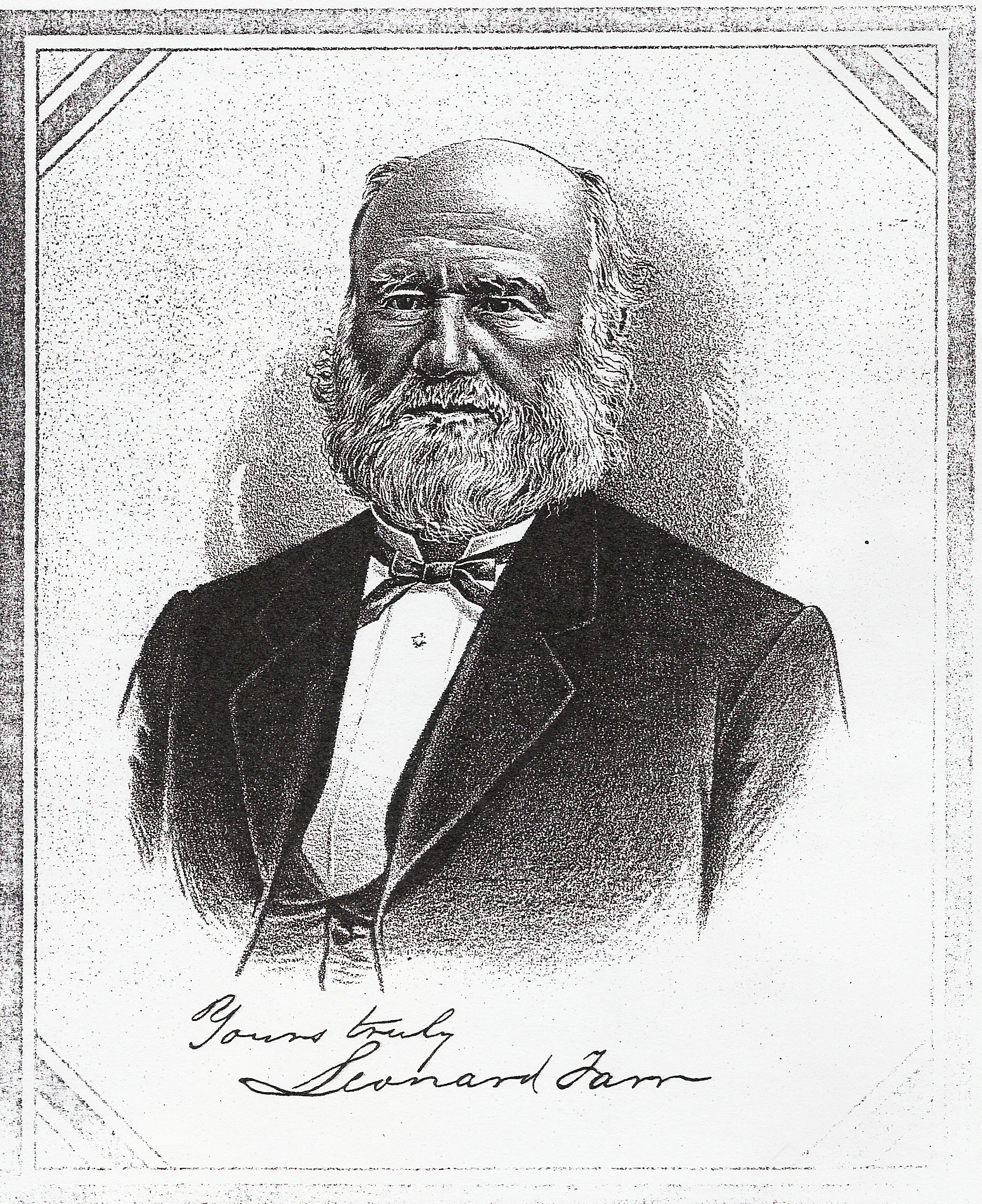 Leonard Farr received his primary education in the district school, and pursued his studies at the Hudson River Seminary, Kinderhook, N.Y. and at the Burr Seminary, Manchester, Vt. When nineteen years of age he commenced teaching school in Butler County, Ohio, and followed that calling in that county until 1838, when he removed to Rushville, Ind., where he was similarly engaged for one year. He spent the years 1839 and 1840 in traveling and teaching in the Southern States. In the latter part of 1840 he located in Augusta County, Va., and taught school in that county until December 1848. He was married, Feb. 22, 1848, to Miss Margaret D. Bush, a daughter of John Bush, a resident of Augusta County, Va. Previous to this time Mr. Farr had made several trips to Henry County, Iowa, the first being in 1841, when he purchased some land. He was back and forth afterward three or four times, seeing to its improvement, and in 1848 he removed west and made his home at Mt. Pleasant. In 1855 he bought the seminary property at Salem, and conducted that institution until the fall of 1856, following which he and his wife traveled east for two years. Returning to Iowa, he settled on his farm near Salem, in Salem Township, where he remained five years, and then moved to the city of Mt. Pleasant, where he has since continued to reside. In his life-work he has been reasonably successful, having at the present time some 1,600 acres of land, 1,300 of which lie in a body in Salem Township.
