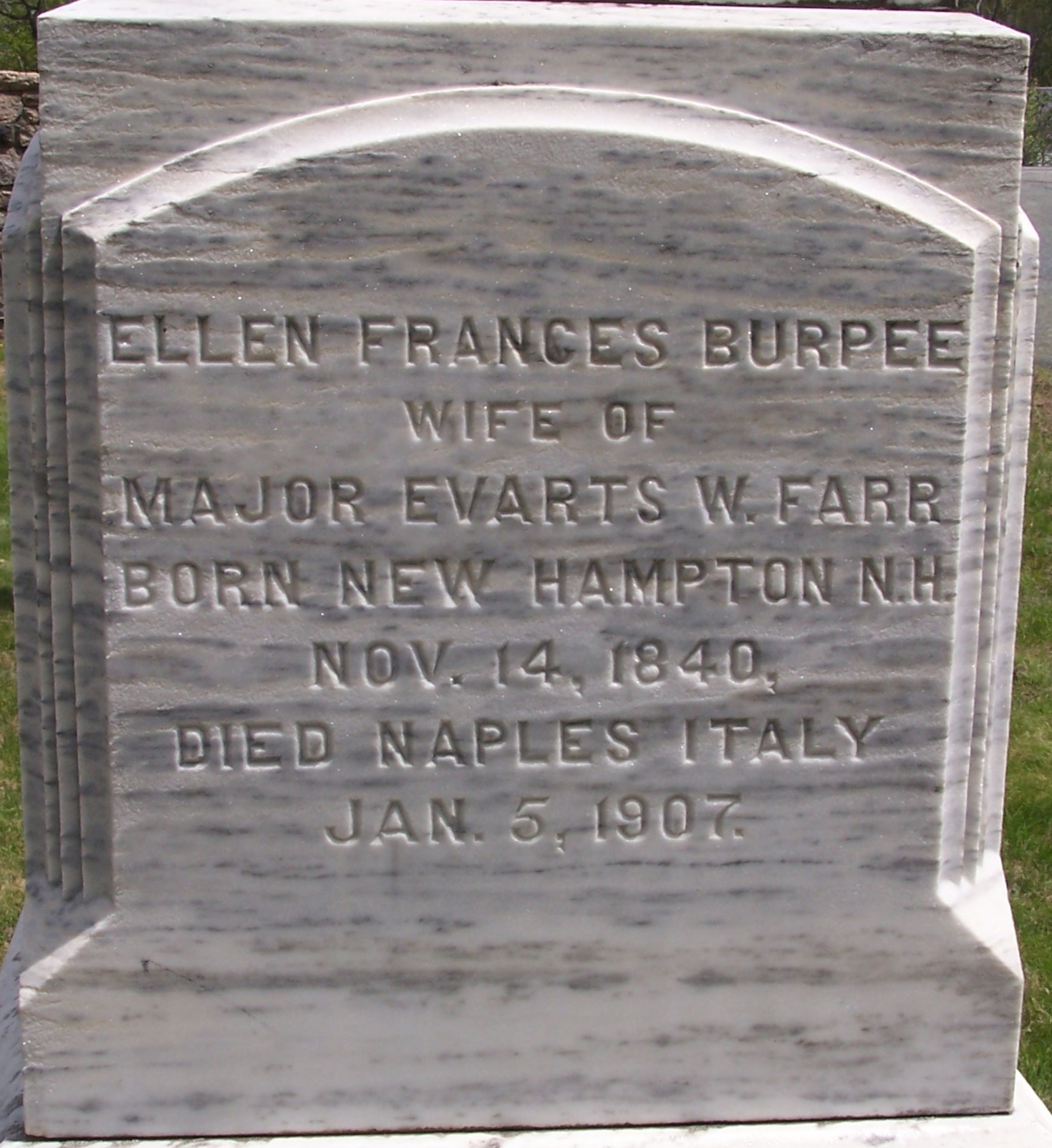 EVARTS W. FARR was born at Littleton on the 10th of October, 1840. He belonged to one of the best families of our State. His father, an honored member of the legal profession, survives him. Mr. FARR was one of eight children, and his early advantages were those of the typical New England country lad. He pursued his academic course at Thetford, Vermont, where he was graduated with honors, and went thence to college. Frank, earnest, and intelligent, the character of the boy gave true promise of the man. What might have been his fortune had he been permitted quietly to pursue his studies, we cannot tell. Destiny had assigned him a part in a stupendous drama, which was to startle Christendom. In that drama he performed his part gloriously and well; and like many other young Americans of that eventful period, he leaped to distinction before he had reached the age of manhood.