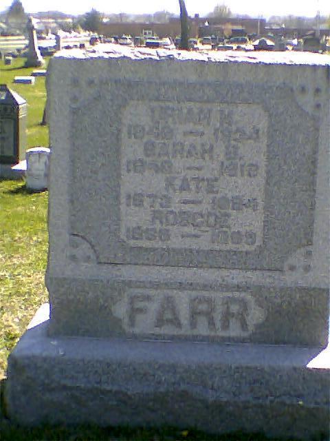 Sarah Blankenship Farr died in 1918. There are six grandchildren living, Mabel Muse Cromwell and Howard Muse, children of Anna Muse Cromwell and Howard Muse, Andrew and Lowell Farr Burkhart, children of Monta Farr Burkhart, Sarah Virginia and James Curry Farr, children of Dan B. Farr. There are five great-grandchildren, William Francis Burkhart, son of Maurice Burkhart, Delbert Frank and Marlin Clare Muse, children of Howard Muse, Lowell Thomas and Edith Anna Burkhart, children of Lowell Burkhart.