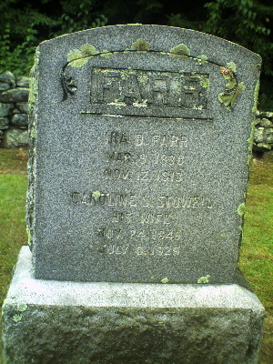 Farr, Dennis "Dennie" W. - Dennie was born in Chesterfield, New Hampshire, 7 Jan., 1840, son of Worcester & Abial (Kneeland) Farr. The FARR FAMILY is an ancient New England family whose New England roots began with Captain Stephen Farr (1647-1696) of Concord, Massachusetts, a soldier of King Philip's War who served in the Narragansett Expedition in 1675 under Captain Nathaniel Davenport. Dennie probably didn't know much about his Farr ancestry back then, however. In the days of his youth, young men were more interested in their own lives and the issues they faced at the time. He grew up in Chesterfield where his father was a small time farmer. Their farm in 1850 was valued at $300. The family was quite large in 1850. Living in that small farmhouse were eleven children with the parents. Of those, two baby boys died in infancy: Gilbert and Chester; and two other sons died at age ten: James and Bernard. The rest of Worcester and Abial's children reached adulthood, married and have children of their own, except Dennie. Dennie was the middle child. He learned the skills of farming from his early youth. His mother and father were Universalists by faith. They attended church in Walpole. They traveled to Brattleboro, Vt. often to hear Rev. Addison Brown preach. He was one of the most popular Universalists preachers in the area at the time. It was during these visits that Dennie met and fell in love with Rev. Brown's daughter. He was a soldier when he married (at age 23), 31 July, 1863, Mary Hannah Brown of Brattleboro, Vermont (b. Brattleboro, 5 July, 1842, dau. of Rev. Addison & Ann Elizabeth (Wetherbee) Brown). They began their married life together in the midst of war. Mary lived with her parents in Brattleboro while Dennie was off with her brother and others to the battlefield. Mary was quite an accomplished young lady. She began her studies with her parent's home schooling. When she was seven years old, her father gave her a new arithmetic book to study. He was so impressed with how well she did, that he wrote a letter to a friend in 1847 to recommend it as follows: