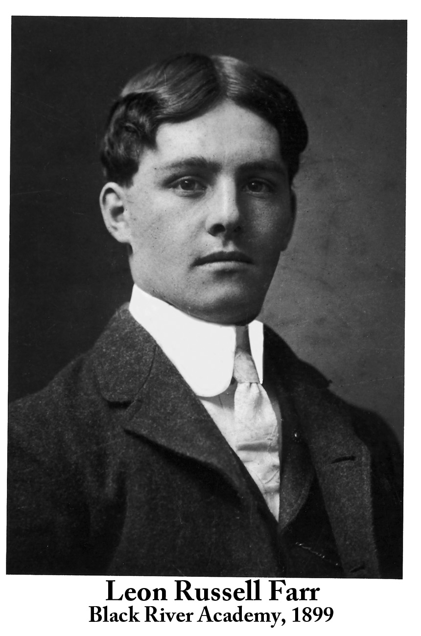 -Cavendish, 9 Aug., 1906: “Leon Farr was at his home here from Collinsville, Conn., called by the serious illness of his mother.” -Proctorsville 12 Nov., 1908: “The supper and concert given by the Order of Woodmen last Friday evening was well attended and pronounced by all present a most enjoyable event. Supper was served in the dining hall from five until eight. The concert was held in the opera house and consisted of selections on the phonograph, duets by Helen M. Hudson and Leon R. Farr, soprano solos by Mrs. Charles Cook, and Misses May and Maude Mack, baritone solos by Rice M. Battey and Charles Parker. Mrs. Charles Parker presided at the piano during the evening.” -Proctorsville, 4 March, 1909: “Leon Farr left Monday morning for Concord, NH where he has a position in the insane asylum.”