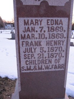 Mary Edna FARR [scrapbook] was born 1 on 7 Jan 1869 in Illinois, United States. She died 1 on 10 Mar 1869 in Marengo, McHenry, Illinois, United States. M iii