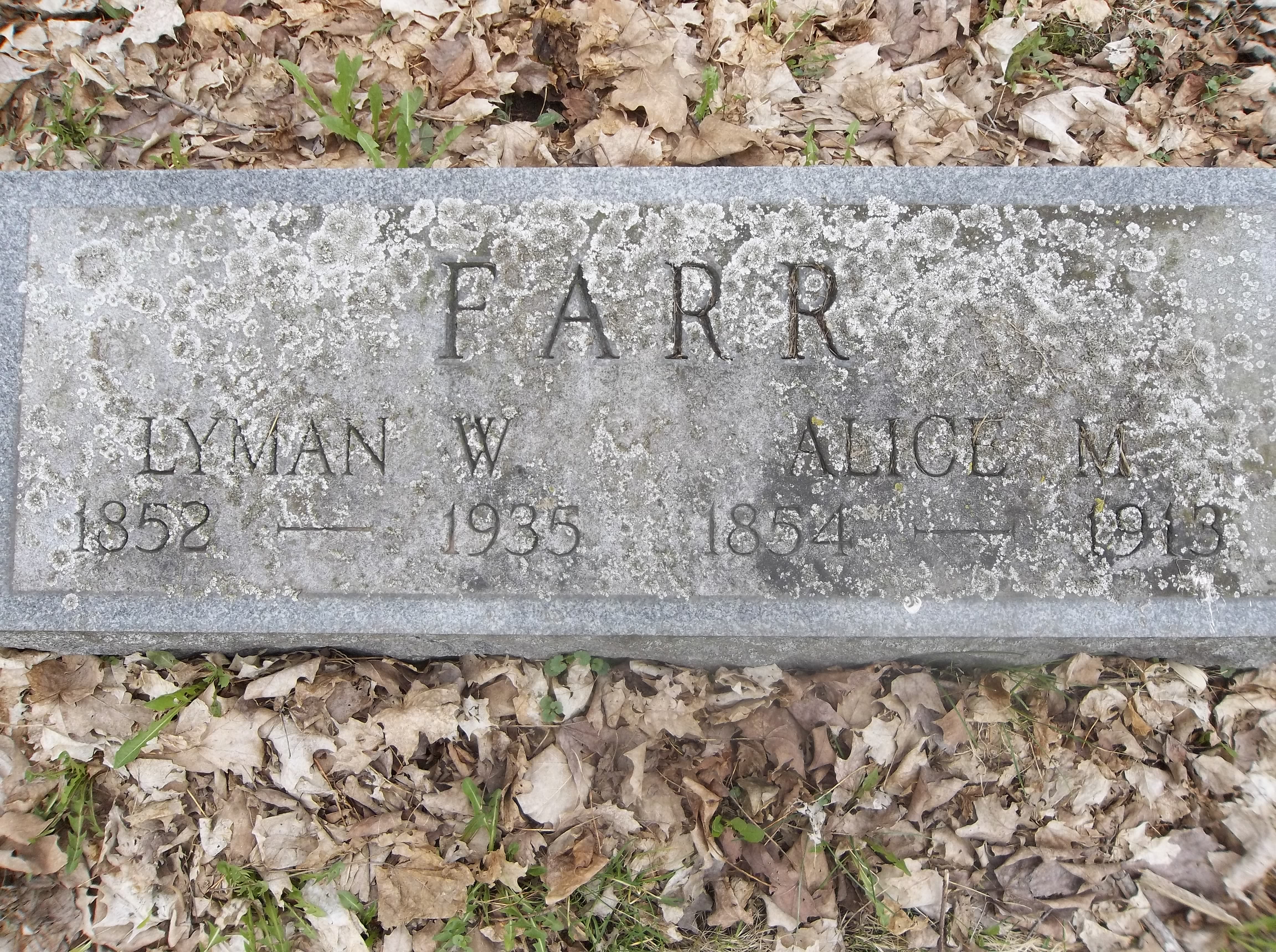 Lyman W. FARR [Parents] [scrapbook] was born 1 on 8 Sep 1852 in Monroe, New York, United States. He died 1 on 21 Apr 1935 in Albion, Orleans, New York, United States. He was buried 1 in 1935 in Albion, Orleans, New York, United States. Lyman married Alice M. FISHER about 1880 in New York, United States. |