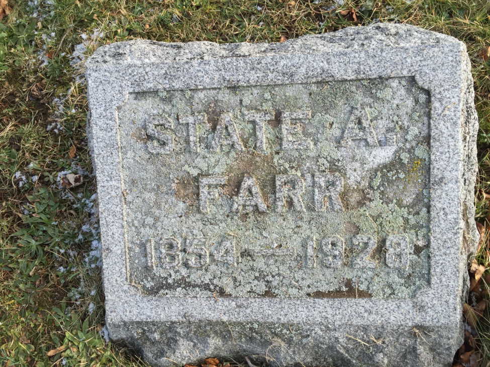 State A. FARR [Parents] [scrapbook] was born 1 on 8 Oct 1854 in Orleans, New York, United States. He died 1 on 23 Jun 1928 in Orleans, New York, United States. He was buried 1 in 1928 in Orleans, New York, United States. State married 2 Nettie Florence HATCH about 1883 in New York, United States.