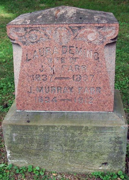 Laura Bell DEMING was born 1 on 30 May 1837 in Rocky River, Cuyahoga, Ohio, United States. She died 1 on 20 May 1897 in Cuyahoga, Ohio, United States. Laura married 2 Joseph Murray FARR 3 on 7 Oct 1855 in Cuyahoga, Ohio, United States. |