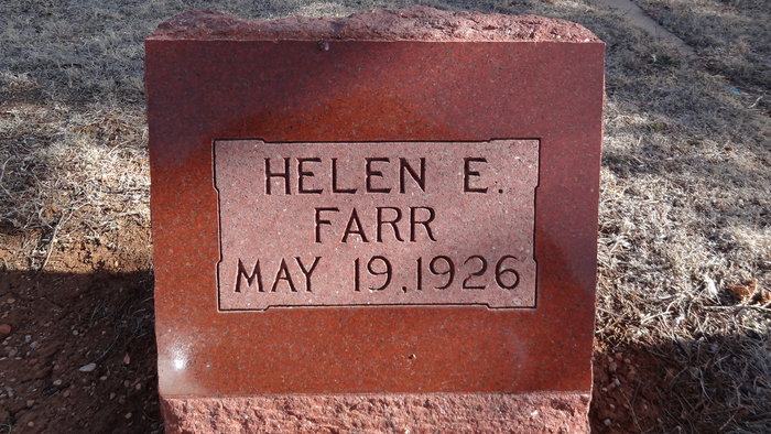 Helen E. FARR [Parents] [scrapbook] 1 was born 2 on 15 Jan 1904 in Oklahoma, United States. She died 3 on 15 Apr 2002 in Tulsa, Tulsa, Oklahoma, United States. Helen married 4 Isaac Dumont FLANNERY 5 on 29 Nov 1929 in Shawnee, Pottawatomie, Oklahoma, United States.