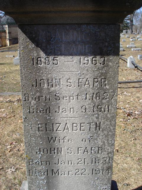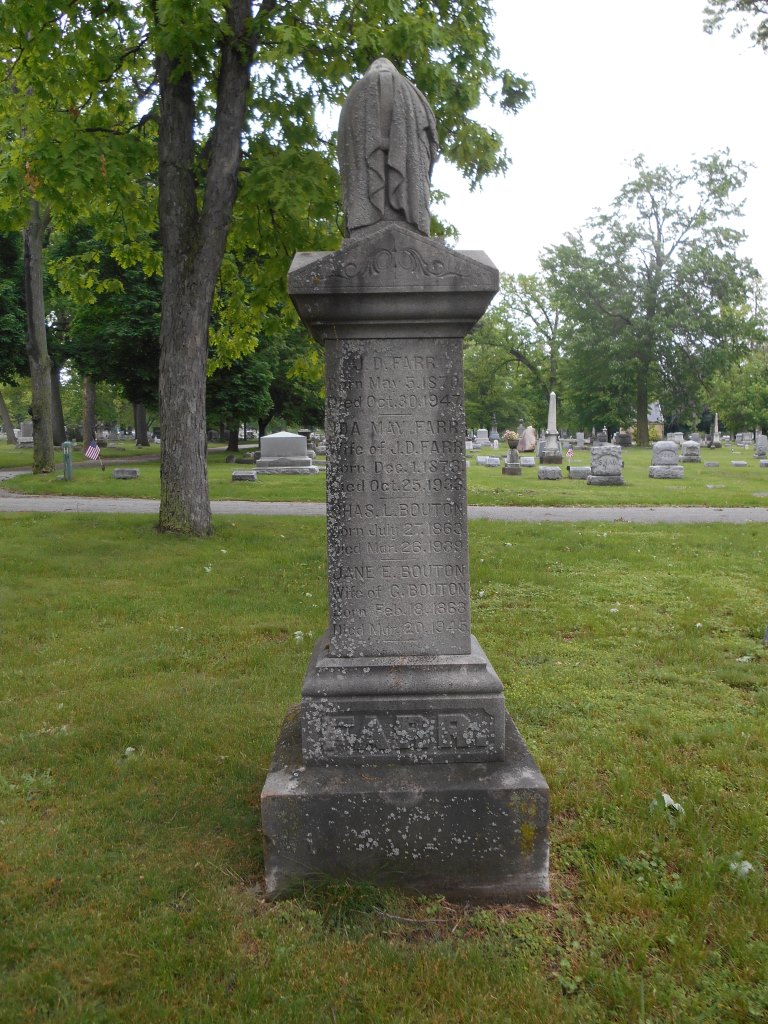 Frank E FARR was born 1 on 4 Mar 1867 in Grand Rapids, Kent, Michigan, United States. He died 1 on 3 Oct 1867 in Grand Rapids, Kent, Michigan, United States. He was buried in Grand Rapids, Kent, Michigan, United States. M vi J.D. FARR was born on 5 May 1870. He died on 30 Oct 1947.