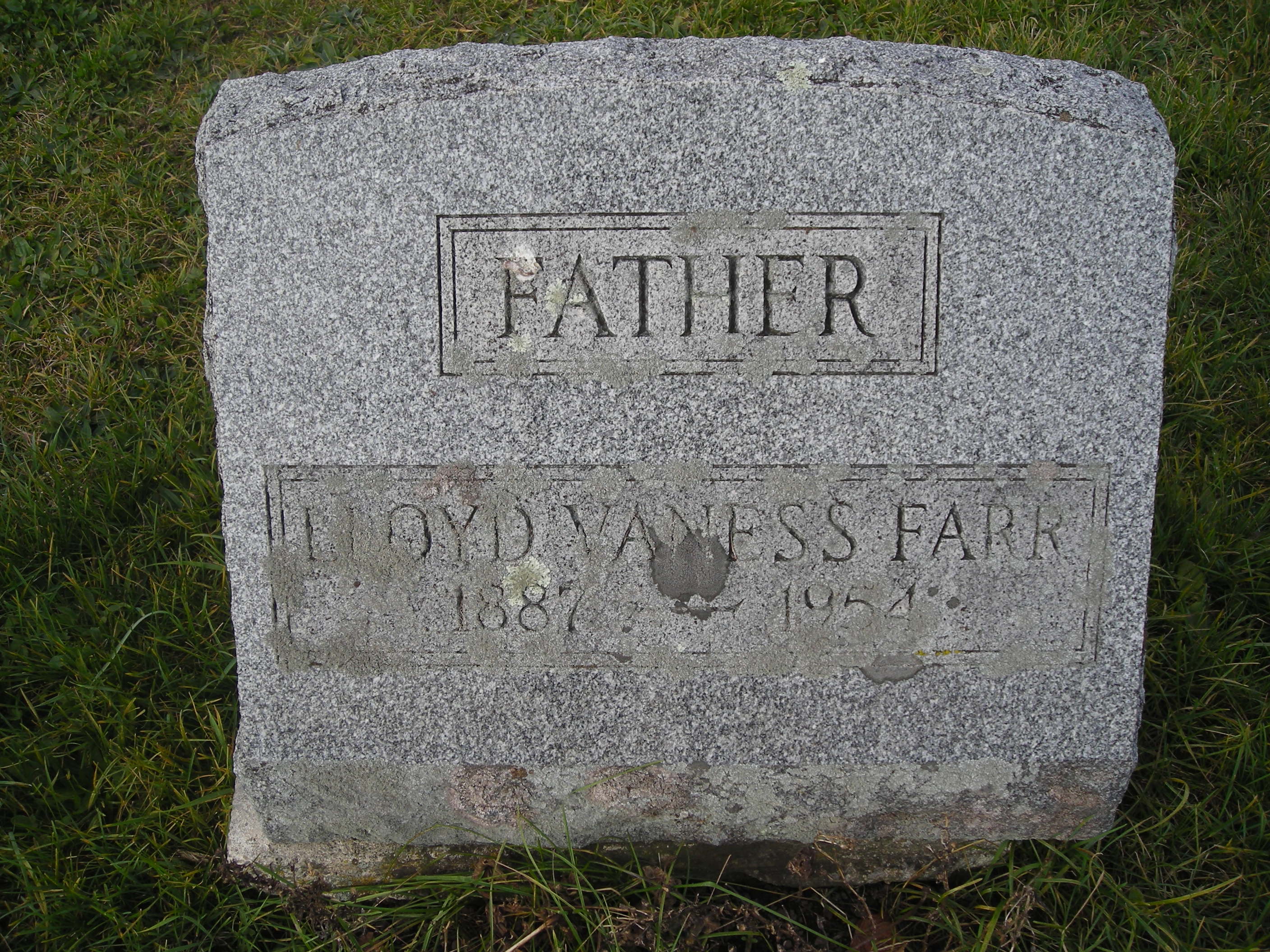 Lloyd Van Ness FARR [Parents] [scrapbook] 1 was born 2 on 16 Aug 1887 in Windham, Wyoming, Pennsylvania, United States. He died 3 on 19 Sep 1954 in Mehoopany, Wyoming, Pennsylvania, United States. He was buried in Mehoopany, Wyoming, Pennsylvania, United States. Lloyd married Leida A. DEWOLF on 17 Jul 1914 in Tunkhannock, Wyoming, Pennsylvania, United States. Other marriages:GOODWIN, Sarah Genevieve |