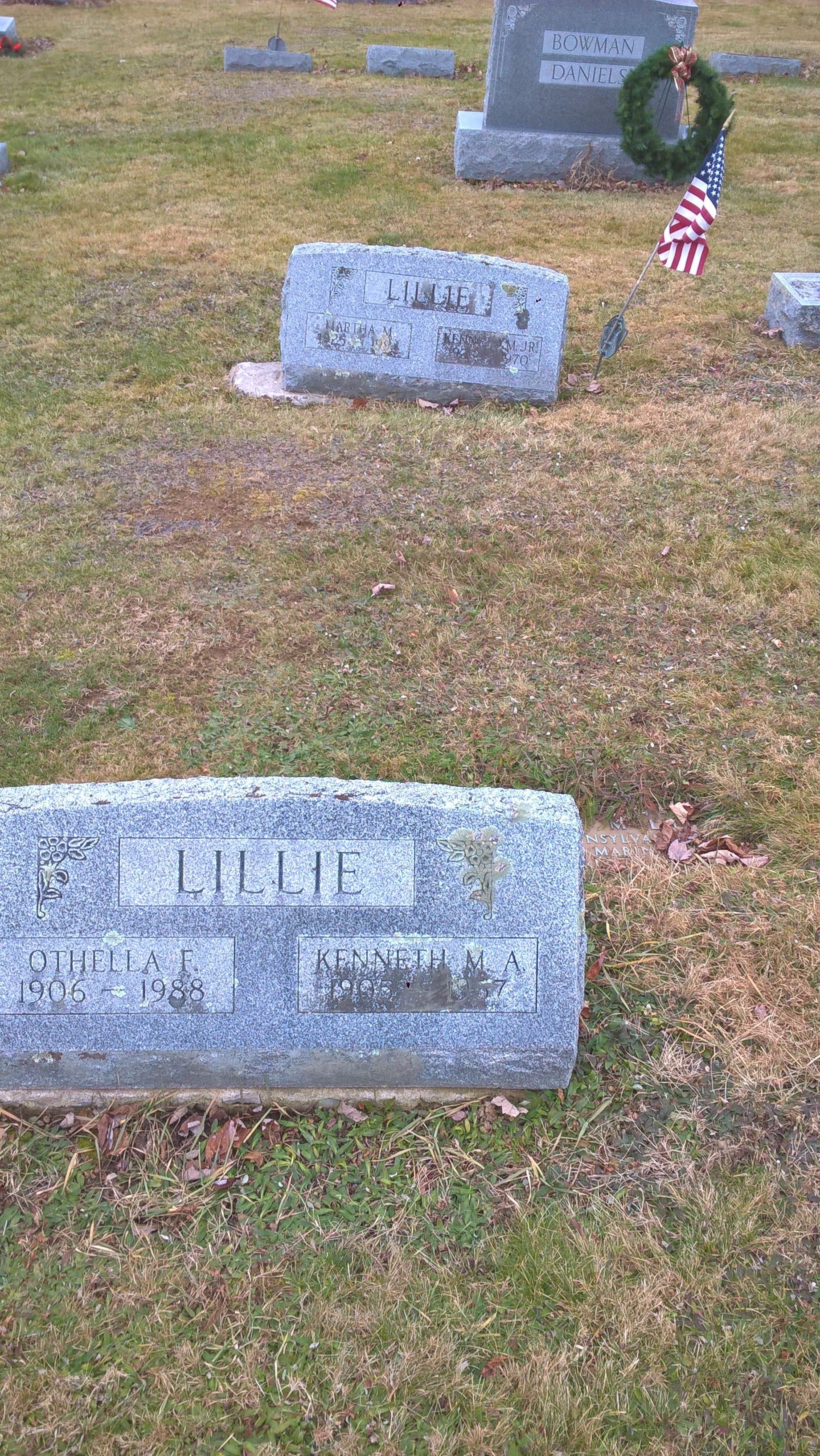 Kenneth M LILLIE was born 1 on 21 Jan 1905 in Pennsylvania, United States. He died 1 on 23 Dec 1957 in Tunkhannock, Wyoming, Pennsylvania, United States. Kenneth married Othella FARR about 1925 in Pennsylvania, United States. |
