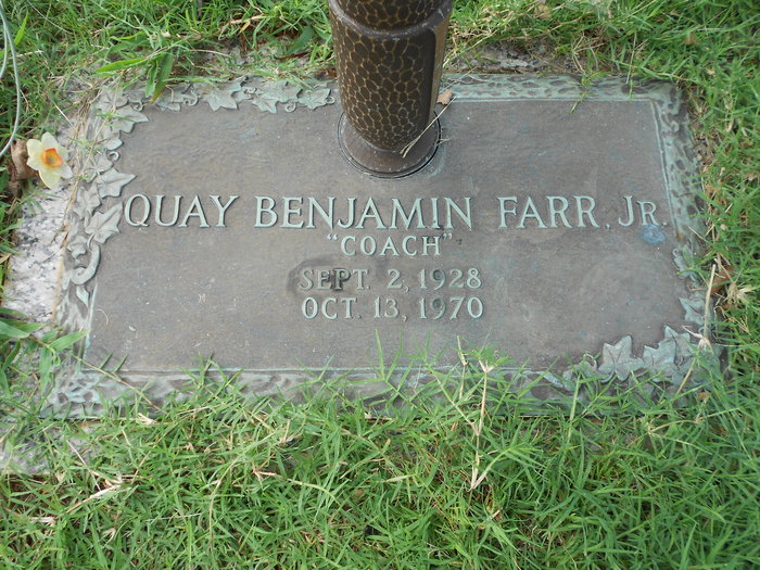 F i Kathryn Elizabeth FARR was born on 29 Dec 1918. She died on 16 Aug 1991. F ii Caroline Grace FARR was born on 13 May 1921. She died on 24 Jul 1997. F iii Evelyn FARR was born in 1924. She died on 5 Mar 2015. F iv Dorothy Evangeline FARR was born on 20 Apr 1925. She died on 19 Jun 1988. M v Quay Benjamin FARR Jr. was born on 2 Sep 1928. He died on 13 Oct 1970. M vi Jonas A FARR was born on 16 Aug 1934. He died on 17 Jan 2001.