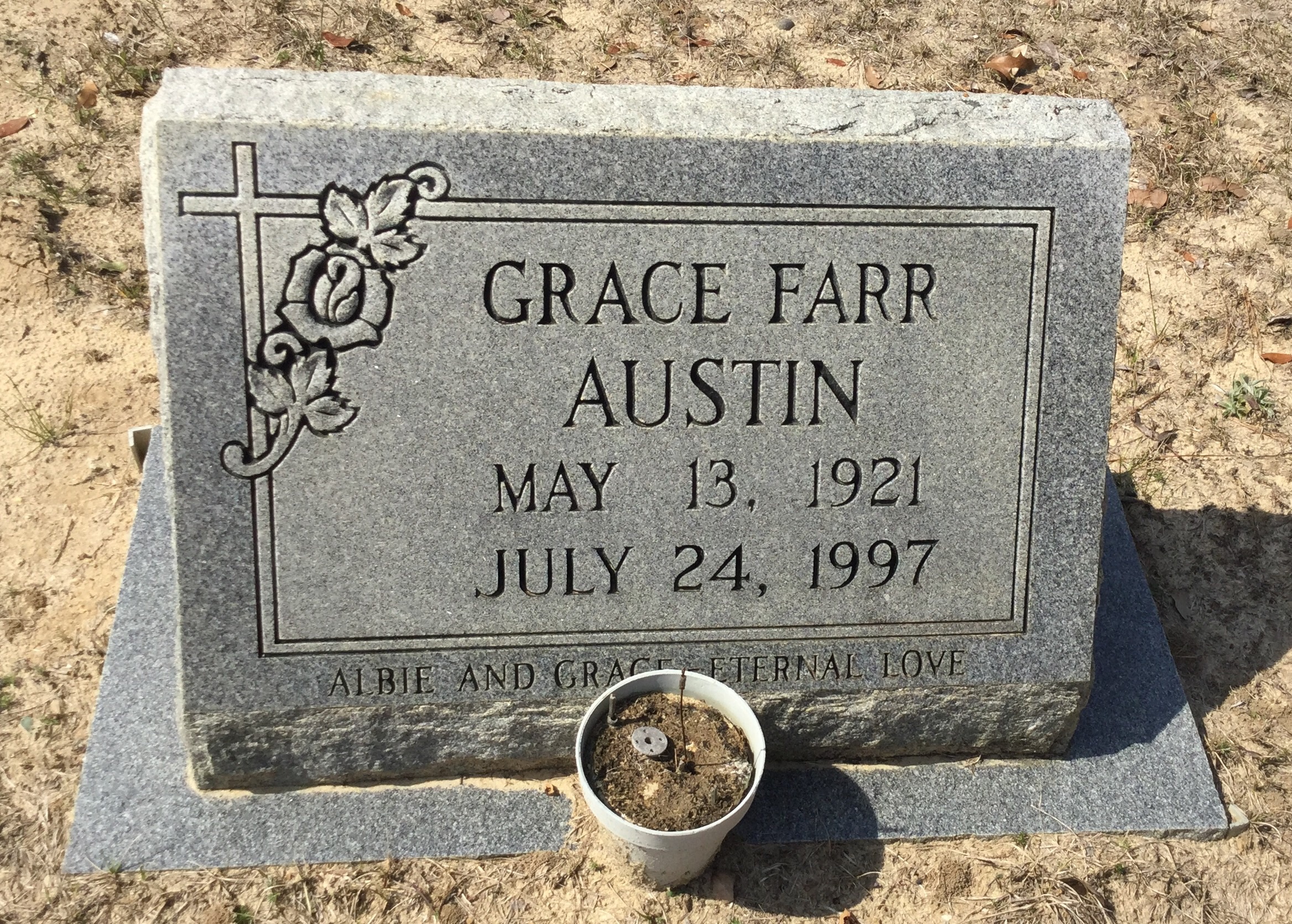 Caroline Grace FARR [Parents] [scrapbook] was born 1 on 13 May 1921 in Varnville, Hampton, South Carolina, United States. She died 1 on 24 Jul 1997 in Beaufort, Beaufort, South Carolina, United States. She was buried 1 in Allendale, Allendale, South Carolina, United States. Caroline married Albert Kerr AUSTIN.