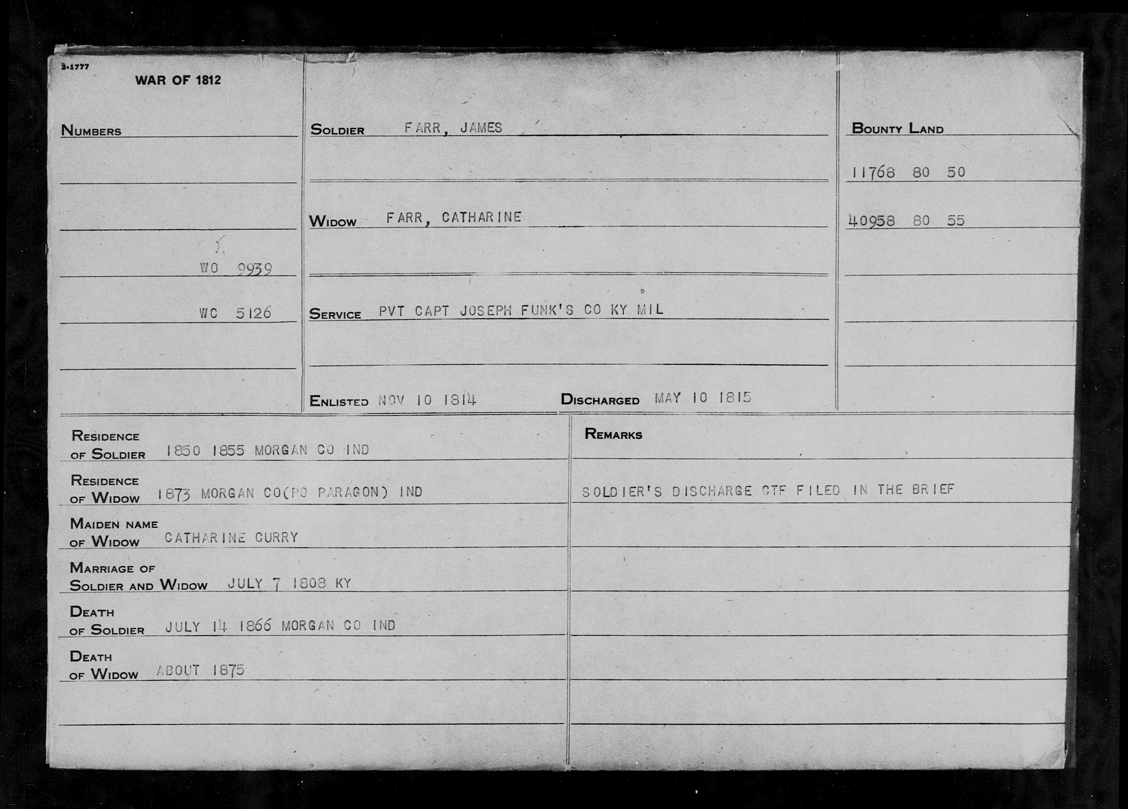 James Farr War of 1812 Pension Application File
