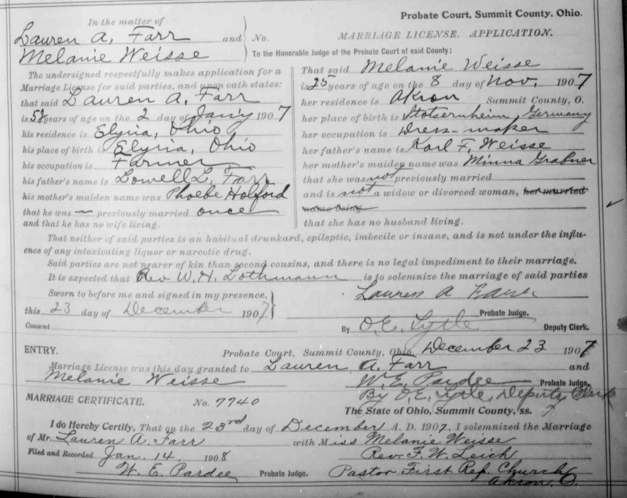 Lauren A Farr & Melanie Weisse Marrige Record
