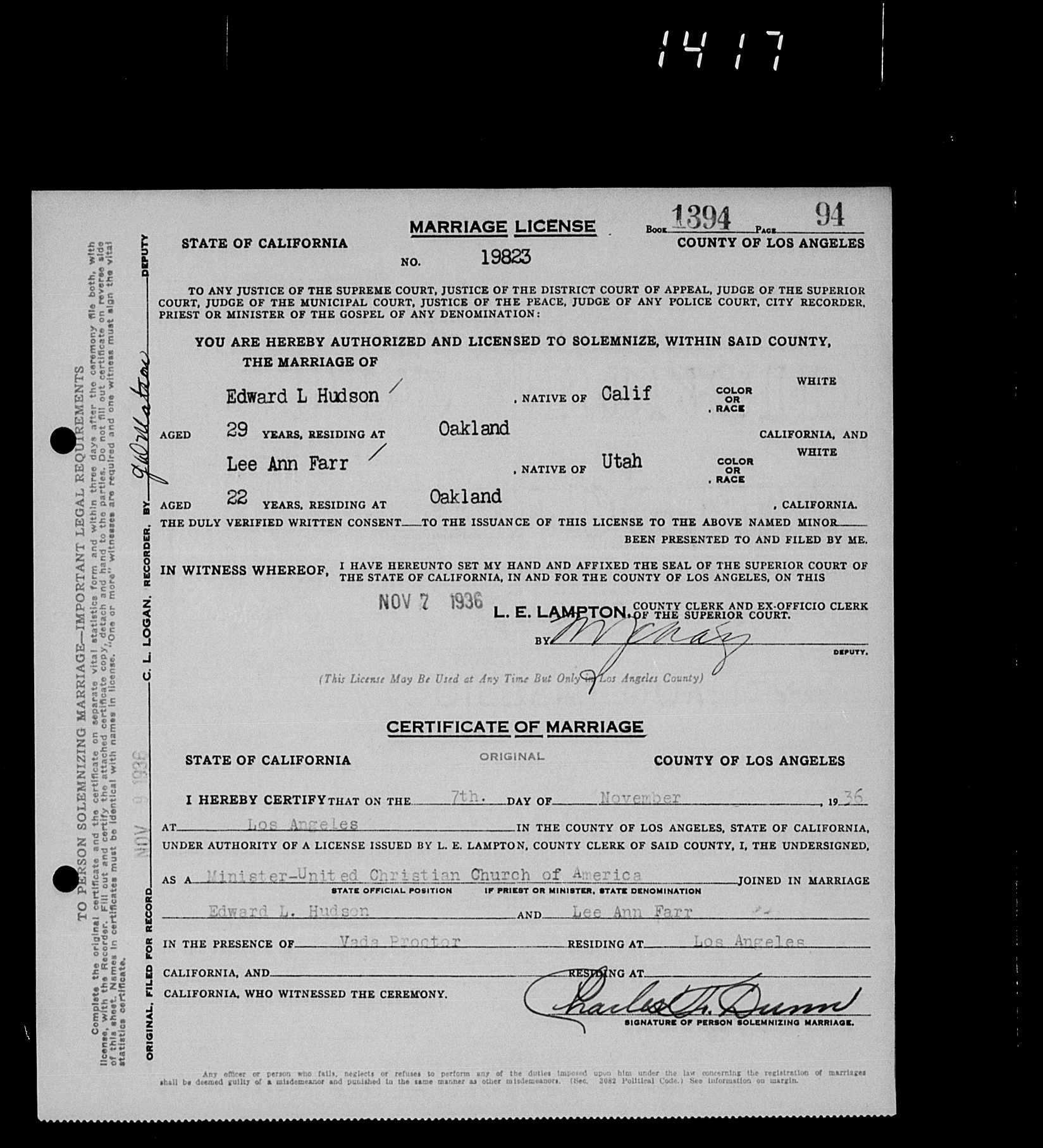 Virginia's Marriage Certificate