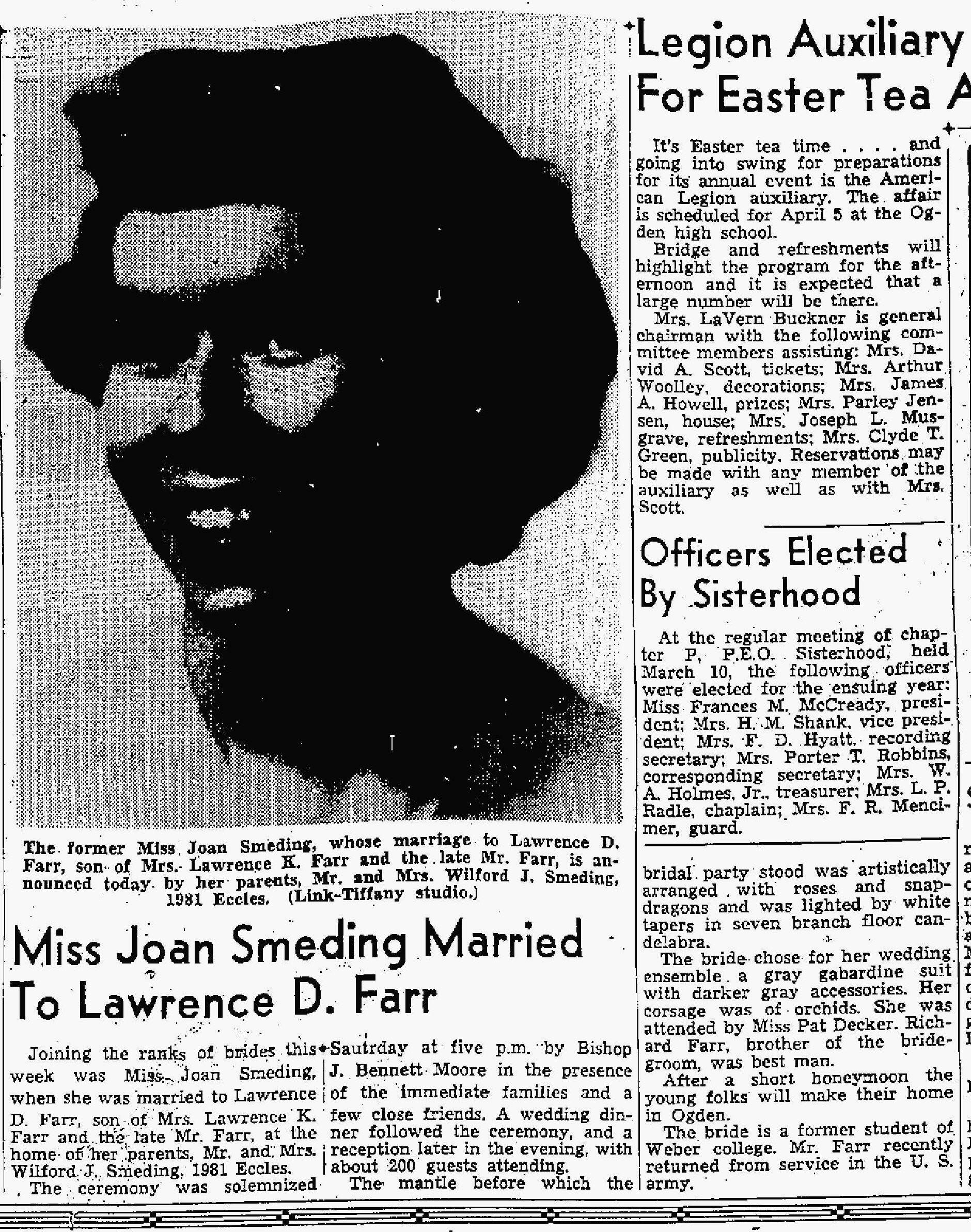 Lawrence D. Farr & Joan Smeding Marriage Announcement in Ogden Standard Examiner
