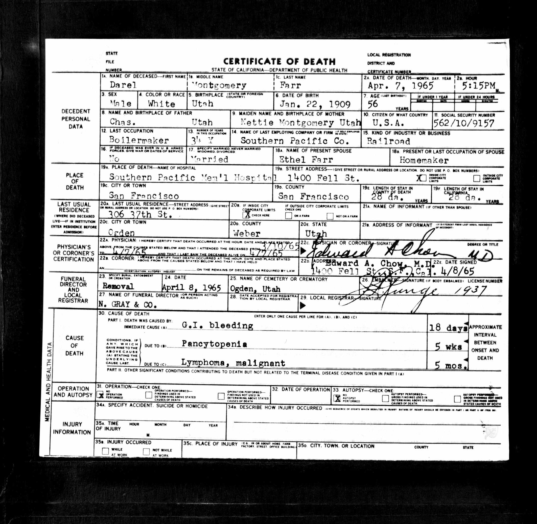 Darel's Death Certificate