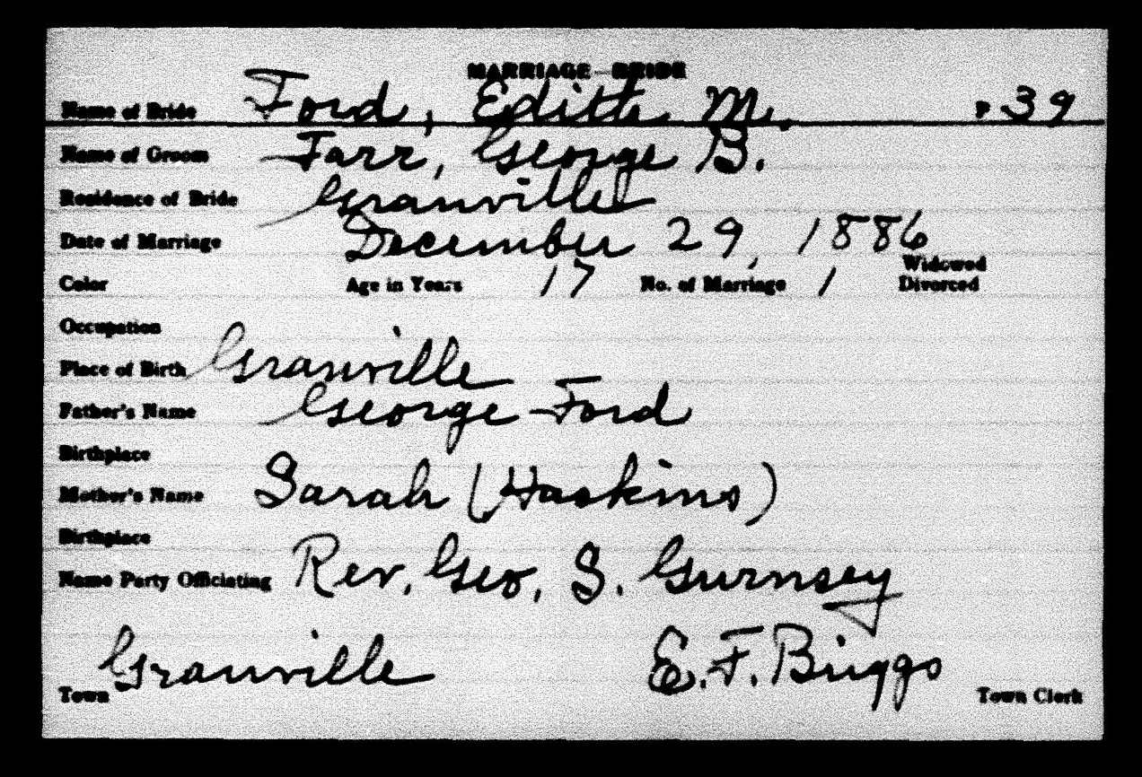 George B Farr & Edith M Ford Marriage Record