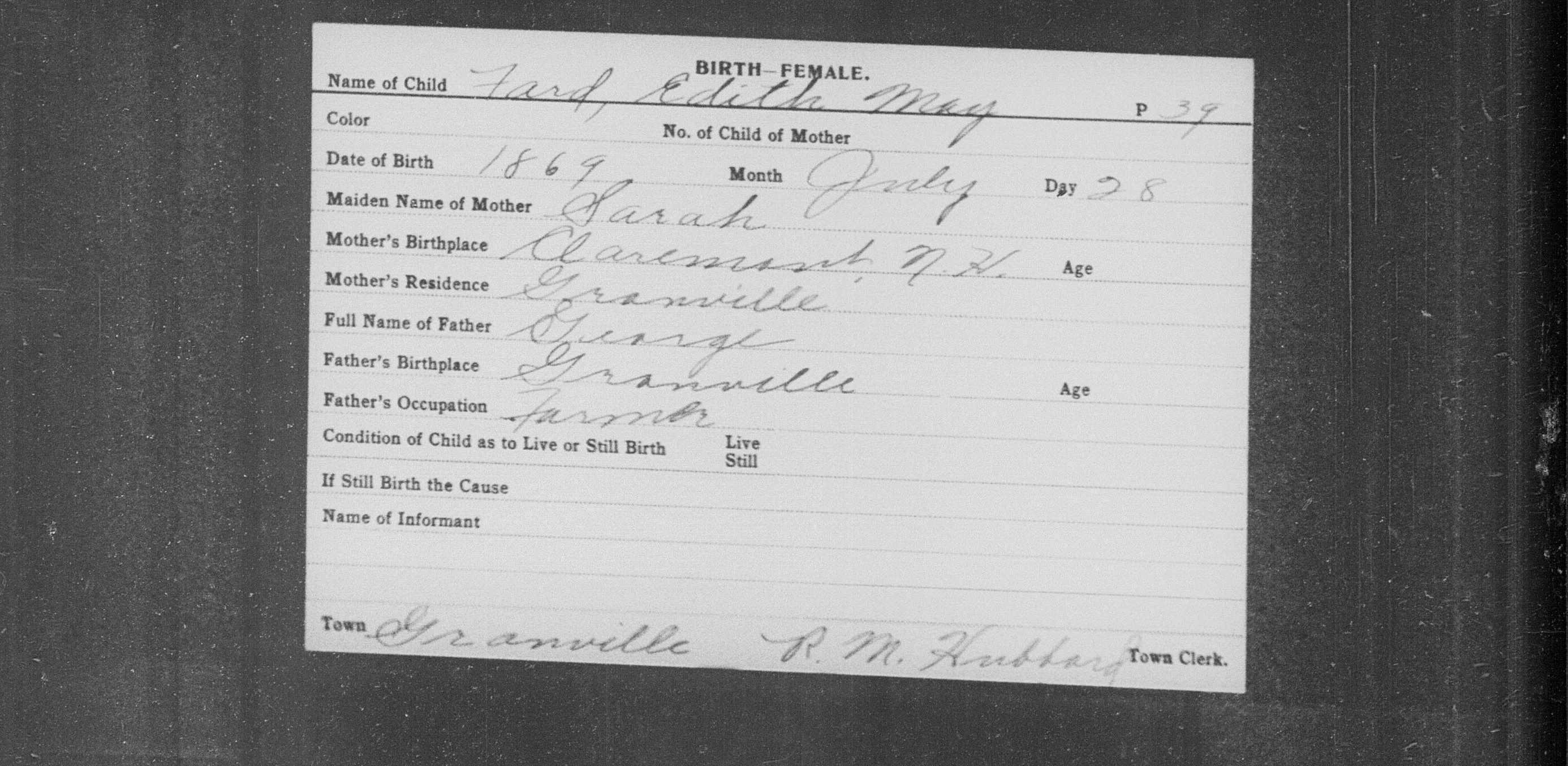 Edith M Ford Birth Record