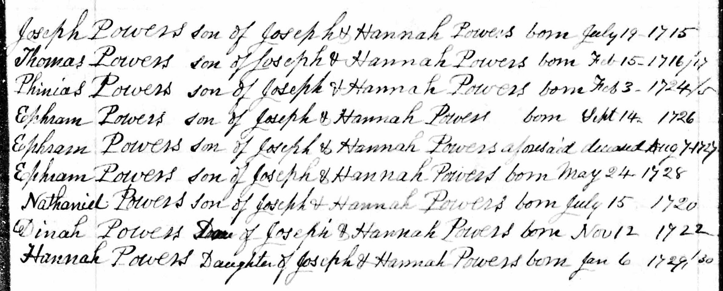 | Joseph Powers & Hannah Whitcomb's Children Littleton Town Records |