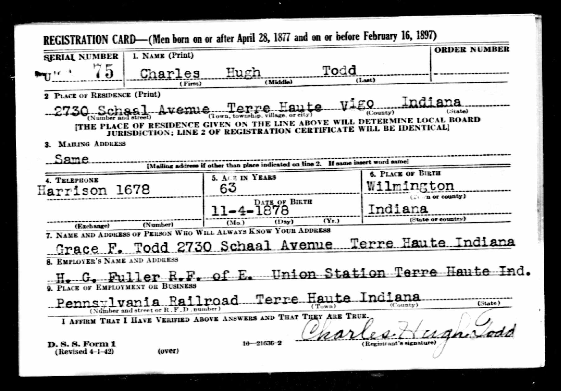 Charles Hugh Todd's Draft Reg. Card