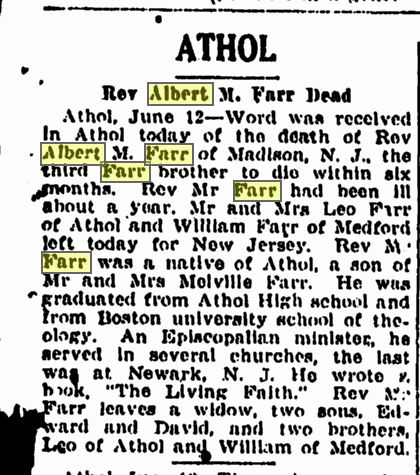 Death Notice of Albert M Farr